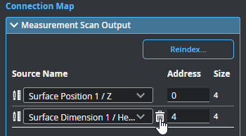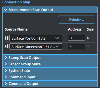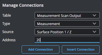 Table When GoPxL is running on a sensor, Table only contains two options (Measurement Scan Output and Stamp Scan Output), which represent register assemblies. When GoPxL is running on GoMax NX, Table contains an additional entry (Sensor Group State). Use this parameter to choose which register a source is added to. Type The types of connection available to be added or inserted.