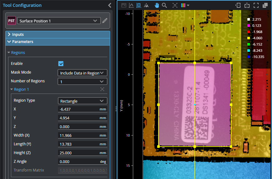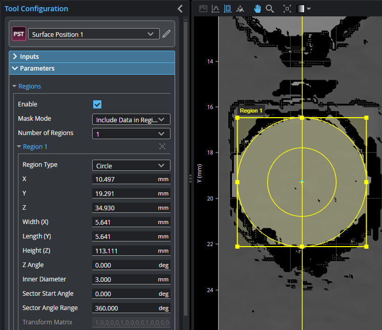 Note that the angles defining a partial circular/elliptical region are relative to the region, and not the sensor's coordinate system. So a region rotated 30 degrees using its Z Angle setting rotates the start angle and angle range by 30 degrees.