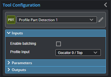 In order to see a detected part's Surface data when the Profile Part Detection tool is selected in the list of added tools, the Part Surface must be selected in the list of outputs or pinned below the data viewer. |