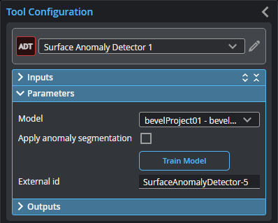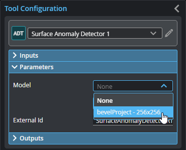 | 5. | In the Surface Anomaly Detector tool, in Model, choose the model you trained and want to use in production. |
