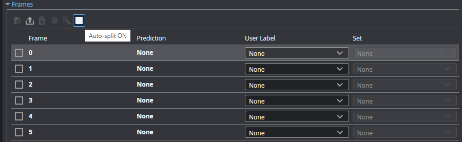 | c. | Toggle Auto-Split to On to automatically set the Set of the selected frames. |