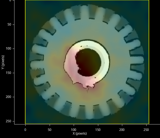 | Heatmap | Diagnostic Image output overlaying the Anomaly Map output on the input scan data. This output can make it easier to see whether the brighter areas in the anomaly map correspond with flaws in the target. |