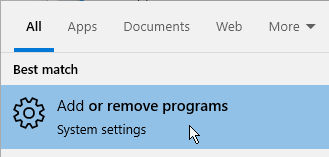 | 1. | On your PC desktop, in the Search field, type "Add" and click "Add or remove programs" in the "Best match" list. |