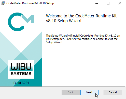 You will need to accept the license agreement before continuing with the installation, and choose whether CodeMeter will be installed for all users on the PC. Leave the defaults in the Custom Setup step.