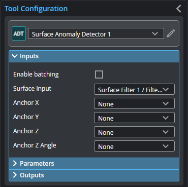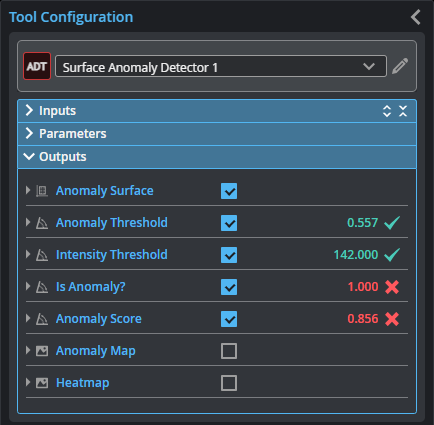 Although the tool has several outputs, the "Is Anomaly" measurement and "Anomaly Surface" output are the main outputs intended for processing by tools later in the tool chain.
