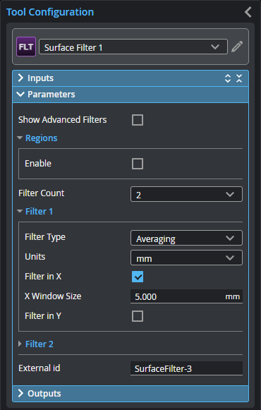 The Filter tool provides no measurements or decisions, as its only purpose is to output processed surface data.