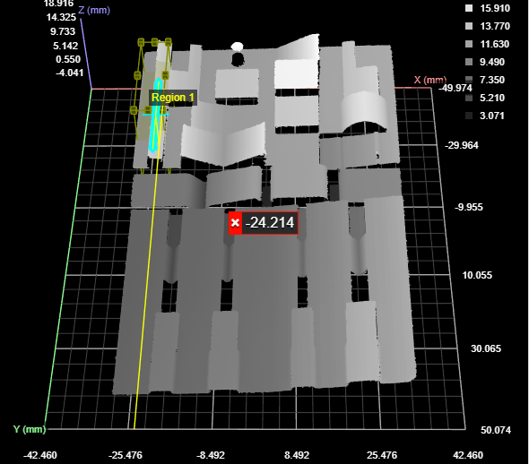 A Surface Position tool (maximum Z), with the region set to the raised point near the top of the data viewer.