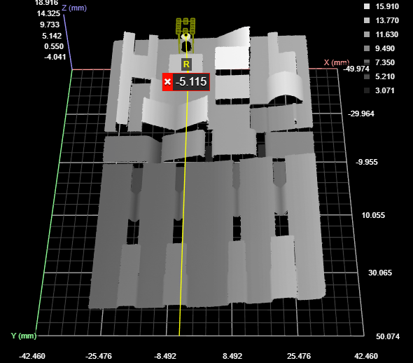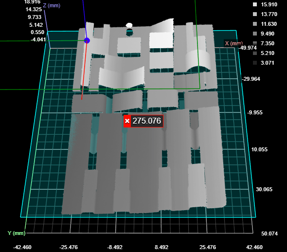 Line profile sensors have independent X and Y resolution settings: the former is set using the Uniform spacing interval setting (for more information, see Uniform Spacing), whereas the Y resolution is set using the Spacing setting in the Trigger panel (for more information, see Triggers. In many applications, the X resolution can be as much as 3-5 times higher than the Y resolution. Rotating scan data around Z greater than 45 degrees (for example, with the Transform tool) when there is a large difference between X and Y resolutions can result in significant data quality reduction. To avoid data quality reduction, choose one of the scaling modes that the tool offers (see below).
