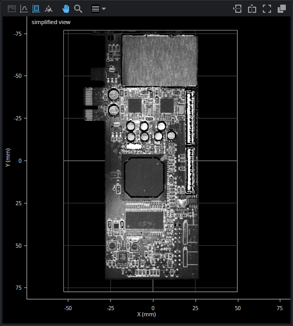 Sensors can produce intensity images that measure the amount of light reflected by an object. An 8-bit intensity value is output for each data point in the scan data. GoPxL uses the same coordinate system as the data points.