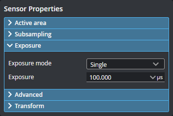 You configure exposure in the Exposure panel on the Inspect > Scan page, in the Sensor Properties section.