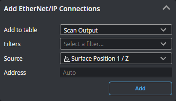 Click Add to add the source to the EtherNet/IP Connections table below. |