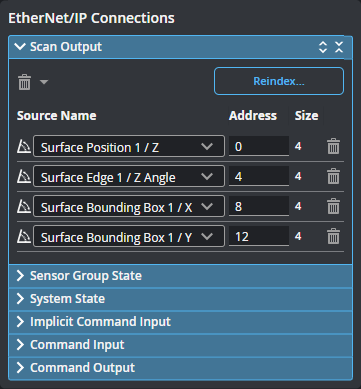 You can use an EtherNet/IP programmable logic controller (PLC) over Ethernet to operate a sensor and receive measurement values. EtherNet/IP only supports a subset of the tasks that can be accomplished in the web interface (for example, starting and stopping sensors, and switching jobs). Scan data can't be sent to the PLC.