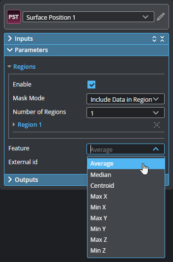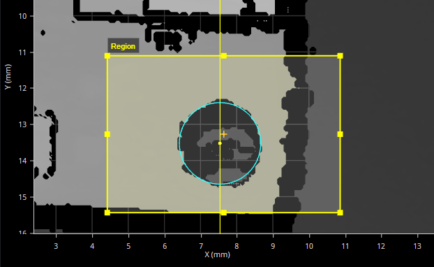 Geometric features are distinct from the “feature points” used by certain tools to determine which data point in a region should be used in a measurement, for example, the maximum versus the minimum on the Z axis of a data point in a region of interest: