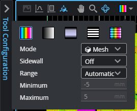 Lets you control how scan data is displayed, such as whether Surface scan data is displayed using a color heightmap or a grayscale heightmap overlay. For information on changing how the data viewer displays Surface data, see Surface and Perspective Display Options. For information on how the data viewer displays Profile data, see Profile Mode.
