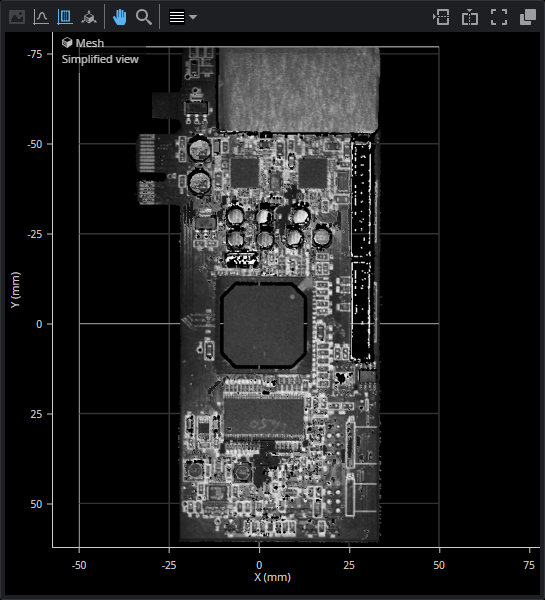 Sensors can produce intensity images that measure the amount of light reflected by an object. An 8-bit intensity value is output for each data point in the scan data. GoPxL uses the same coordinate system as the data points.