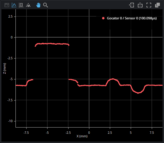 When Profile data is available, either because GoPxL is in Profile scan mode or because a Profile output of a tool like Surface Section is providing Profile data, the data viewer can displays