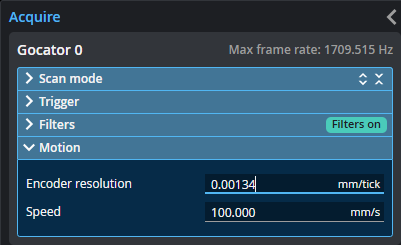 To set the encoder resolution, expand the Motion section and set the value in Encoder Resolution.