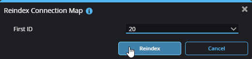 Use Reindex... to remove gaps of unused addresses between connections. You can also use Reindex... to set the value of the first index.