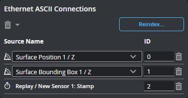 The connections listed here will be sent by the protocol to a compatible PLC. You can delete a connection using the trashcan icon in its row, or change its ID.