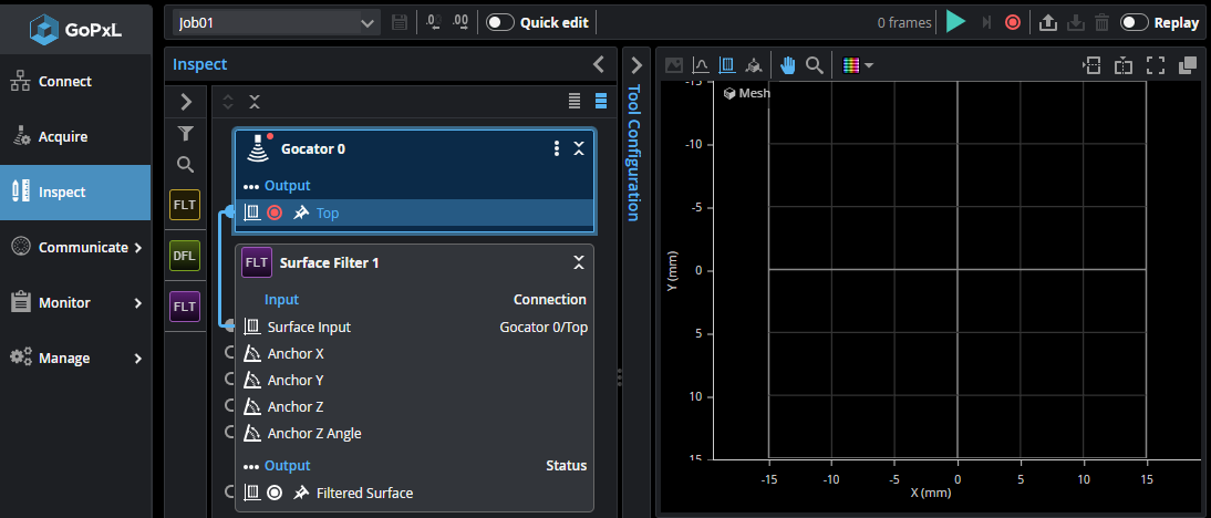 When you record data with output recording enabled for any of the tool's outputs, the resulting replay data will contain the scan data coming from the sensors, but also the tool's output data. Once you've downloaded this replay data and uploaded it to a sensor or PC instance of GoPxL, both sources are available in a tool's input.