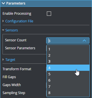 | 14. | Under Sensor Parameters, select the sensors, one by one, and configure the parameters related to the sensor's position. |