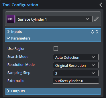 You configure the tool's parameters in the expandable Parameters section.