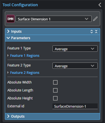 When these are expanded, they display the region- and mask-related settings associated with the two features the tool uses to perform measurements. The feature parameters associated with these regions are Feature 1 and Feature 2, respectively; for more information, see below. |