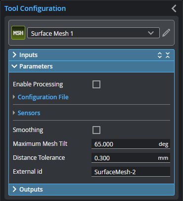 Causes the tool to start processing scan data from individual sensors, combining it into a Mesh data output. Make sure to load the XML |