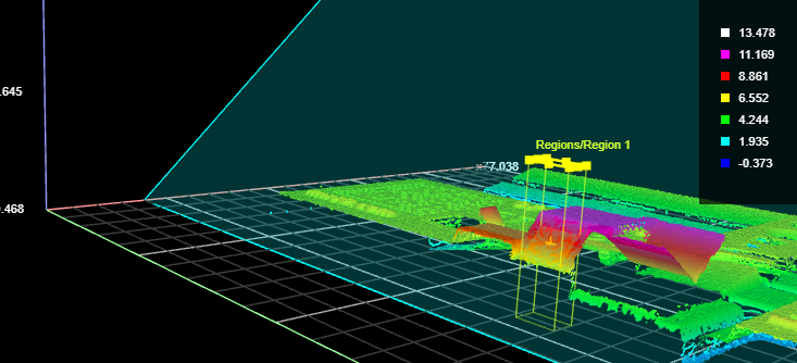 Max Error Measures the maximum error from the detected plane (the maximum distance above the plane, perpendicular to the plane) within the specified region or regions. |