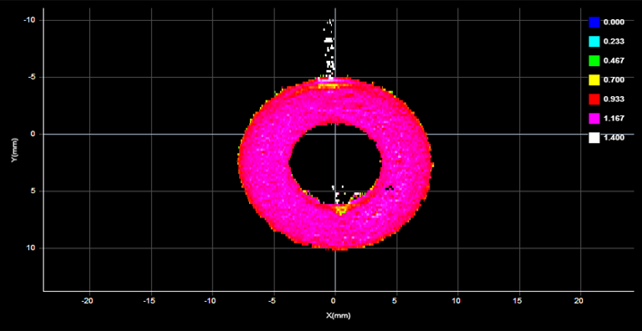 The sensor reorders profiles within a surface to be aligned with the encoder’s index pulse. That is, regardless of the radial position the sensor is started at, the generated surface always starts at the position of the index pulse. If the index pulse is not detected and the rotation circumference is met, the surface is dropped and the Encoder Index Drop indicator will be incremented. This mode is typically used in applications where measurements of circular objects or shafts need to be taken, such as tire tread inspection, or label positioning on bottles.