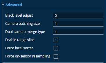 The settings in Acquire page > Sensor Properties > Advanced section let you configure material characteristics, camera gain, and dynamic exposure.