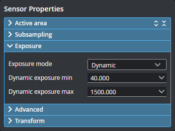 Limits the sensor's exposure values to the provided minimum and maximum. |