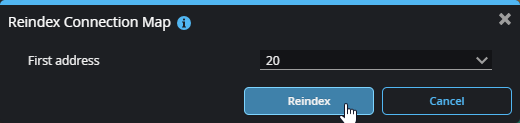 Use Reindex... to remove gaps of unused addresses between connections. You can also set the value of the first index.